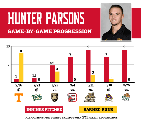Parsons then worked on speeding up his pace and, using the confidence Muscara instilled in him, has gotten better every start since. He threw a two-hit complete game shutout Sunday, striking out a career-high nine batters in what Vaughn called his best collegiate start.